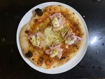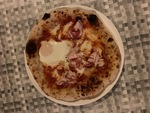 Impasto con farina Caputo Nuvola ed idratazione al 73%, copertura con pomodori "pelati" sgocciolati da 24 ore e sminuzzati a mano, cascata di mozzarella di bufala scolata da 24 ore tagliata a listarelle, spolverata di Parmigiano Reggiano. In cottura, uovo al tegamino con cuore morbido. Post cottura, rosette di pancetta arrotolata, giro d'olio al tartufo.